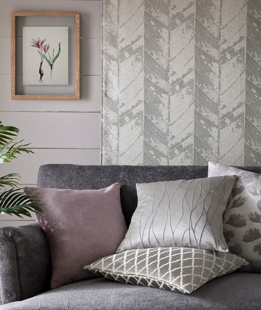 This fresh and bright collection exudes sophistication and elegance. Fairhill draws inspiration from delicate leaf structures and organic imagery, coordinated with satin geometrics and a chenille plain, creating a modern take on a design classic. Fairhill combines contrasting jacquards to create an eclectic collection full of personality. Available in 4 luxurious colour groups, from dusky mauves to warm brass.