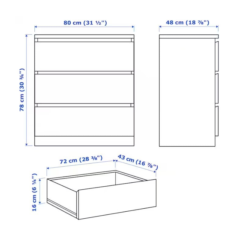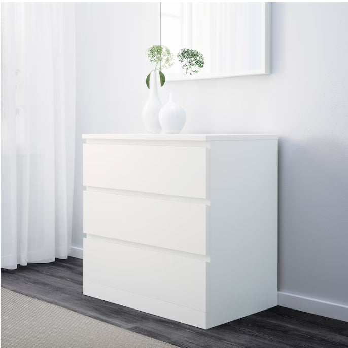 MALM Almari 3 laci, putih80x78 cm